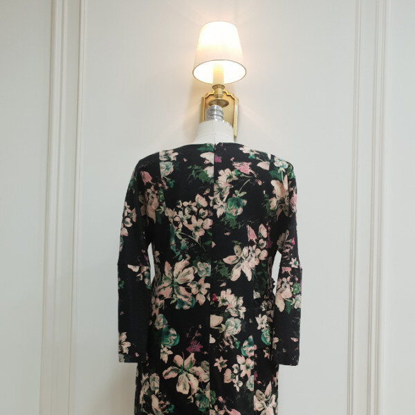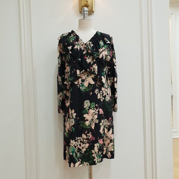 앞판 프릴 디테일이 포인트인 프린팅 원피스.착용시 슬림해보이는 효과를 줍니다. 원단에 기모감이 있어 보온성이 뛰어남.