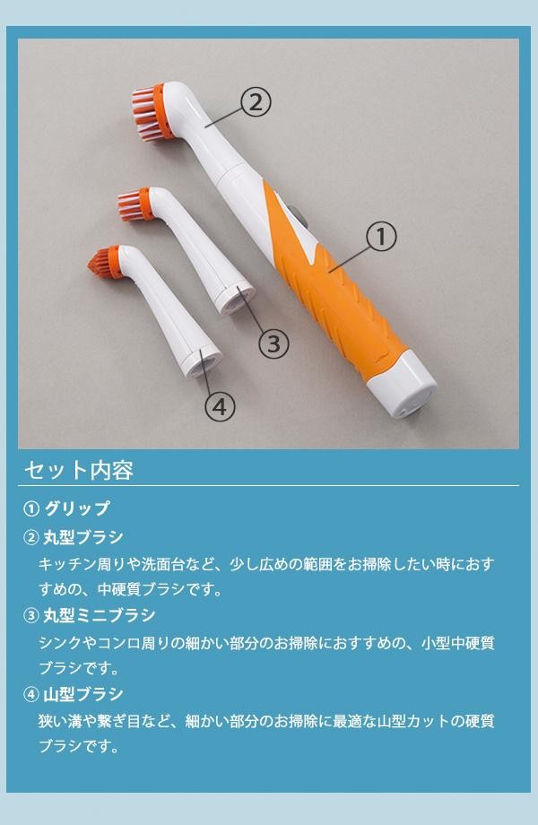 | セット内容 | グリップ 丸型ブラシ 丸型ミニブラシ 山型ブラシ 取扱説明書 |