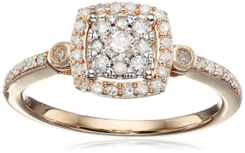 Antique-style rose gold-plated ring featuring cushion-shape centerpiece with cluster of round-cut diamonds
