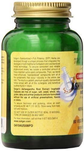 Solgar Standardized Full Potency Ashwagandha Root Extract Vegetable Capsules, 60 Count