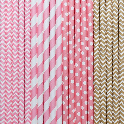 - Stylish Color- Straw design colors included: 25 x gold wave, 25 x pink wave, 25 x pink strip and 25 x pink dot paper straws