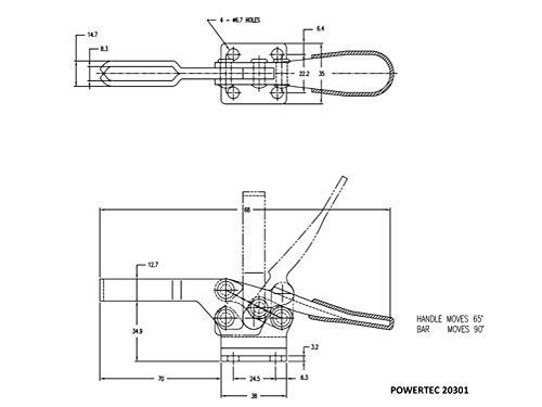 POWERTEC 20301 Horizontal Quick-Release Toggle Clamp, 500 lbs Capacity, 225D