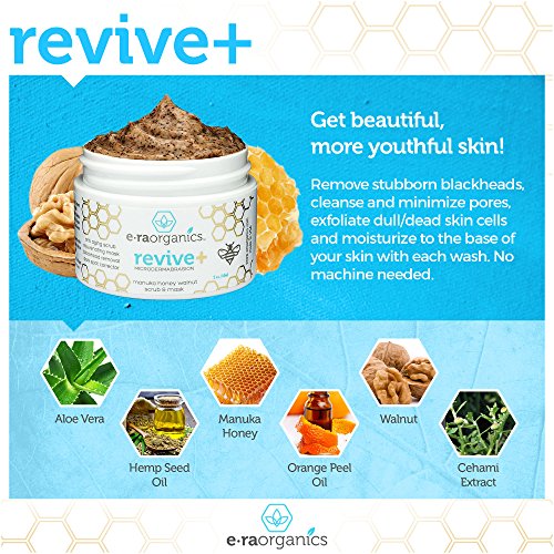Microdermabrasion Face Scrub & Facial Mask in One 4oz. Natural Facial Exfoliator with Manuka Honey & Walnut for Dull or Dry Skin, Wrinkles, Blemishes, Acne Scars & More. Exfoliate, Moisturize & Renew