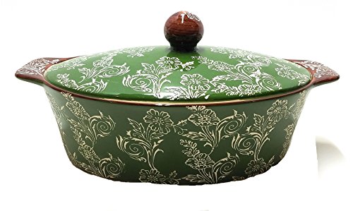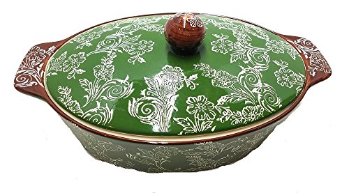 Oven to Table 2.5 Quart Ceramic Covered Casserole plus "Made With Love" Chefs Apron (Green + Brown)