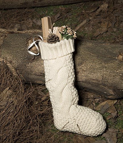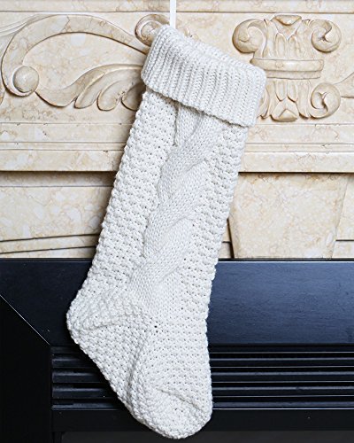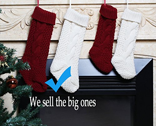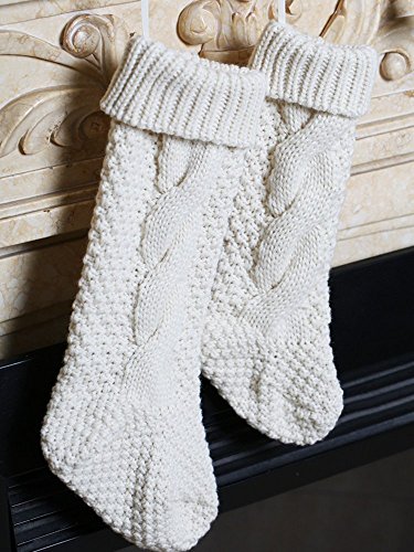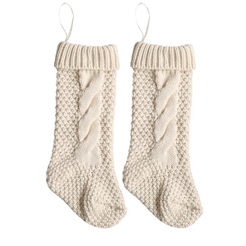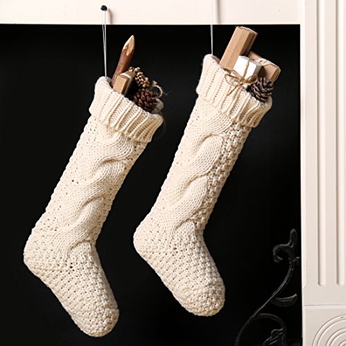 17 Inch Knitted Christmas Stockings, Pack 2 Xmas Gift Bags Cream