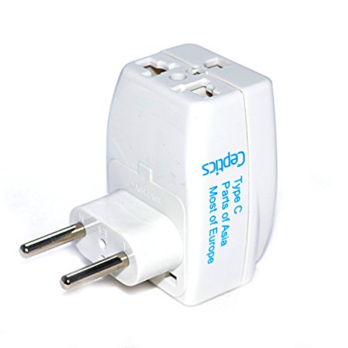 The adapter Type E/F can be used in the following countries: GERMANY, FRANCE, SOUTH KOREA, EUROPE: Austria, Belgium, Czech Republic, Finland, The Netherlands, Norway, Turkey, Poland, Portugal, Slovakia, Spain, Sweden, Estonia (Exceptions may occur) and Tunisia, Morocco. The input is a universal receptacle that accepts all types of connectors (Including: 2-Prong US "polarized", 3-Prong US grounded, European, UK, AUS and India plug standards. But not the large South African plug). The adapter does not change the Voltage. Please check the voltage standard for the travel destination and use a Voltage converter with the adapter if needed. (example, Europe use mainly 230 Volts). Many electrical devices such as AC/DC chargers for Laptops, cameras etc. allow a multi range Voltage (110-240 Volts) and eliminate the need of a Voltage converter. Sometimes electrical device have a switch for either 120 or 230 Volts (remember to set back!). Please check the specifications on your equipment. Powering a 120 Volts device with 230 Volts can destroy the equipment and cause fire.