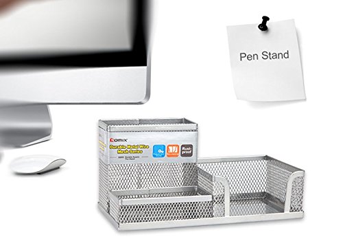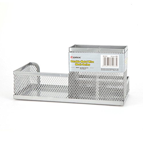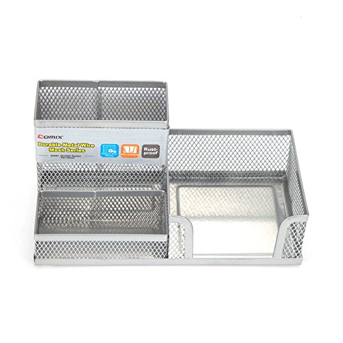 Comix Metal Pen and Pencil Multifunctional Holder with 3 Compartments, Wired Mesh Design, Durable Metal with Cuboid Stand - Silver (B2061SL)