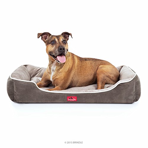 -. Title : BRINDLE Washable Rectangle Dog Bed with Raised Bolster Design - Tan