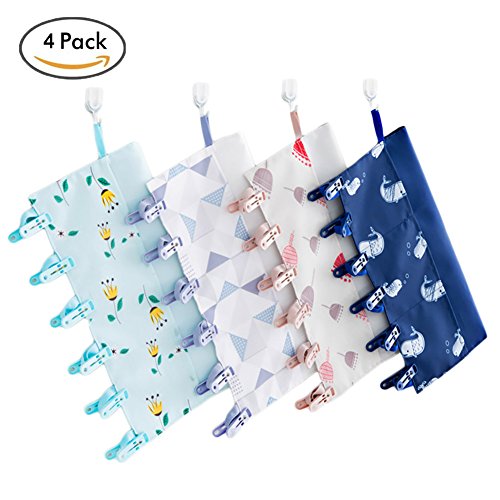 JINMURY 4 Pack Multifunction Bathroom Clothespin Folding Cloth Hangers Travel Portable Foldable Space Saving Drying Racks with 6 clips and 3 Pockets