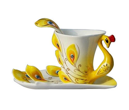 -. Feature : Material:colored enamel porcelain / Peacock theme design / Including a cup,a saucers,a spoon / Crafted of fine Enamel porcelain