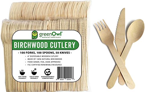✔ SMOOTH & SPLINTER-FREE: The sturdy smooth construction helps prevent splintering, bending, breaking, fraying, snapping, or getting soggy. No chemicals, toxins, or coatings used. Each GreenOwl® fork, spoon, and knife is made with 100% natural premium Birchwood, which is a renewable resource that is biodegradable, recyclable, and compostable.