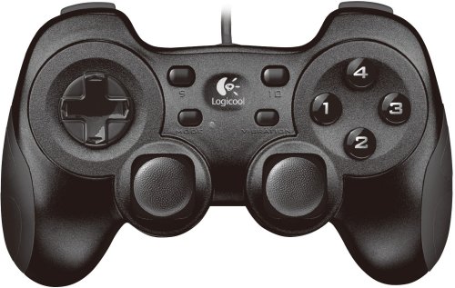 PC game controller with built-in dual vibration motor with Logitech limited items attached.