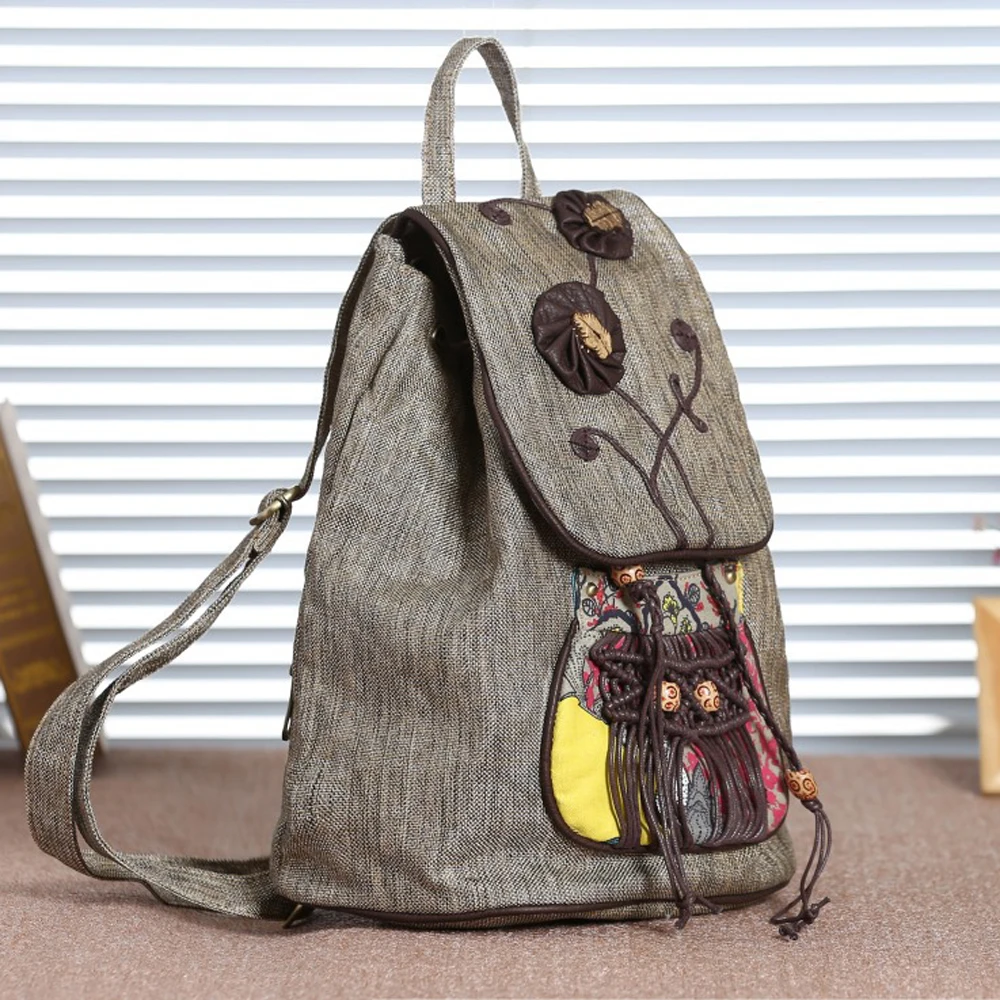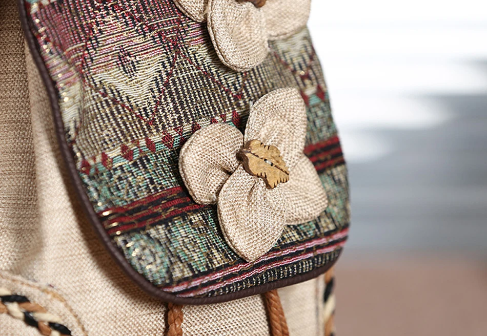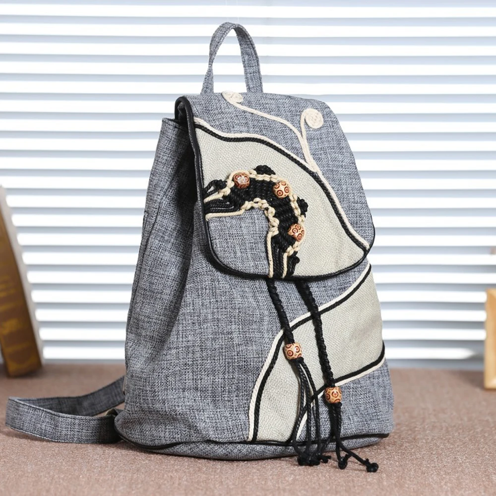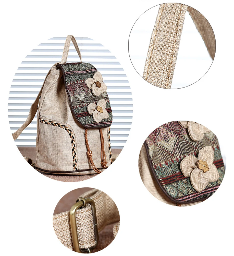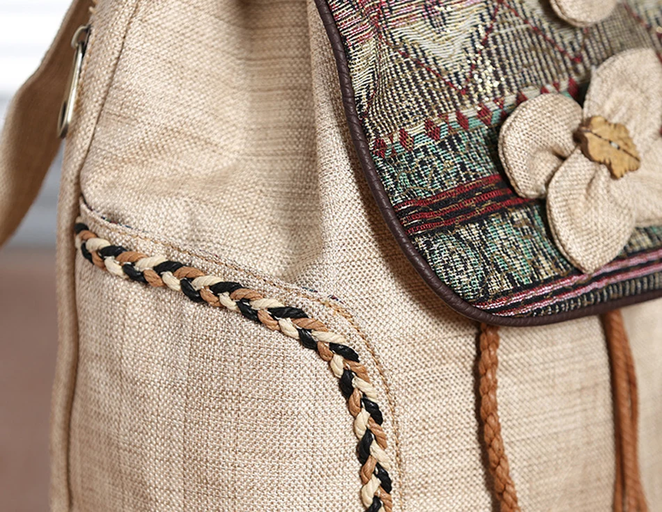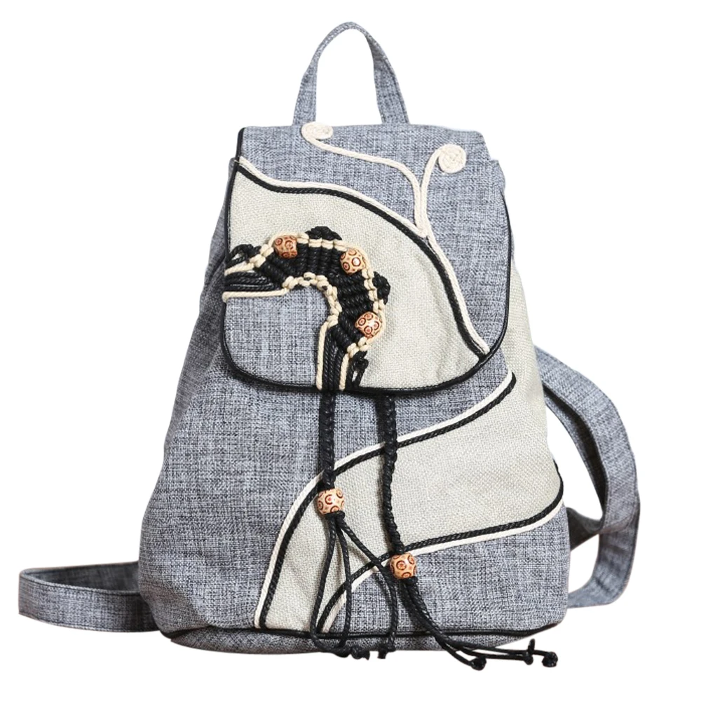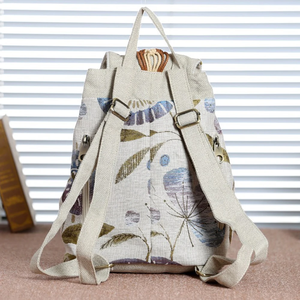 High Quality Canvas Backpacks Womens Bags Unique Drawstring Weave School Bags For Teenages girls Casual Shoulder Bags Daypack