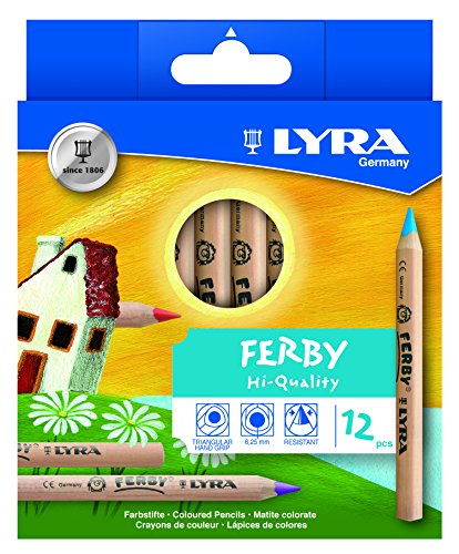 LYRA Ferby Unlacquered Triangular Colored Pencils, 6.25 Millimeter Lead Cores, Set of 12 Pencils, Assorted Colors (3611120)