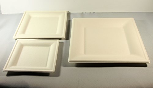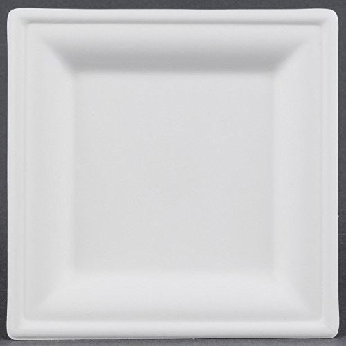 Square Heavy Duty Disposable Plate Compostable made from Sugarcane by Greenplate 50 Count White (10 inch square)