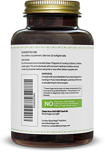 Omega 3 Fish Oil Triple Strength, Best for EPA & DHA, Fatty Acids, Burpless, 1400mg Softgels 120-Count by BodyVega