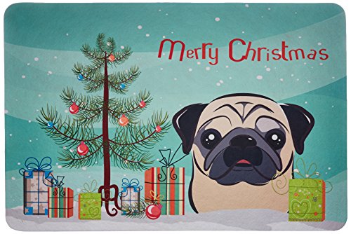 Caroline's Treasures BB1634JCMT Christmas Tree and Fawn Pug Kitchen or Bath Mat, 24 by 36", Multicolor