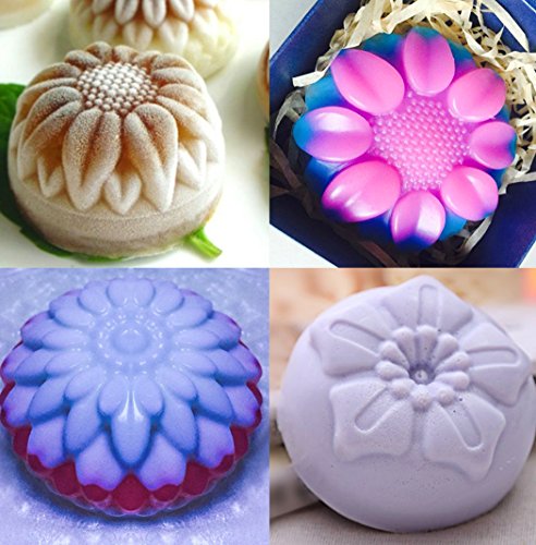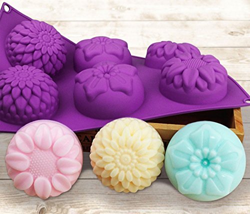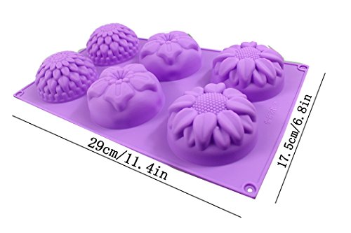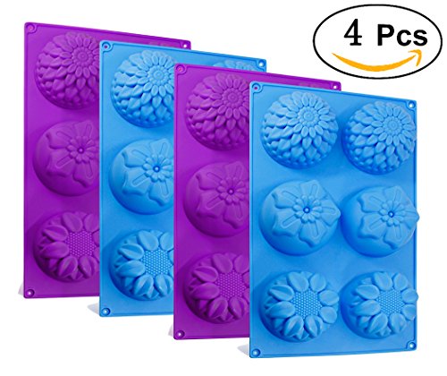 Xiaoyu 6-Cavity Silicone Flower Shape Cake Molds, Decorating Cube Trays for Homemade Cake Chocolate Cupcake, Pack of 4, Bule & Purple
