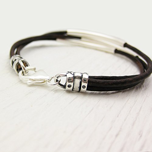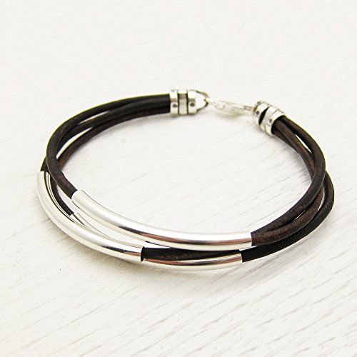 -. Title : Antique Brown Eco Friendly Leather & Sterling Silver Unisex Bangle Bracelet