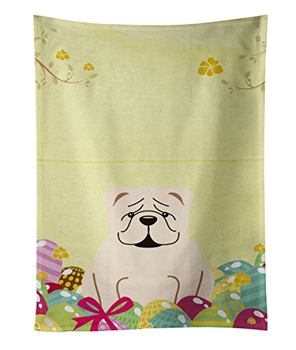 Caroline's Treasures Easter Eggs English Bulldog White Kitchen Towel, Multicolor, 25" x 15"