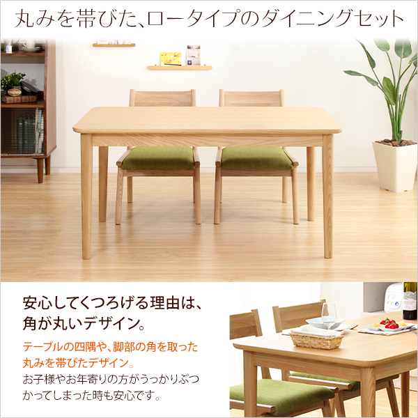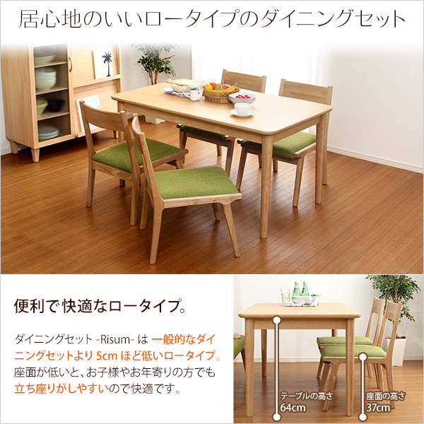ダイニング5点セット(テーブル+チェア4脚)ナチュラルロータイプ 木製アッシュ材|Risum-リスム-