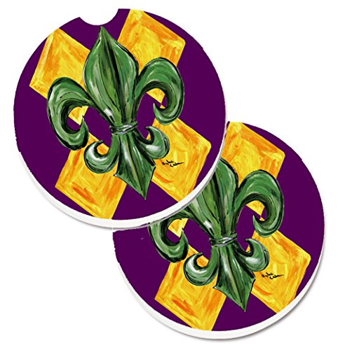 Caroline's Treasures Mardi Gras Fleur De Lis Purple green & Gold Set of 2 Cup Holder Car Coasters 8133CARC, 2.56, Multicolor