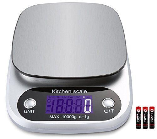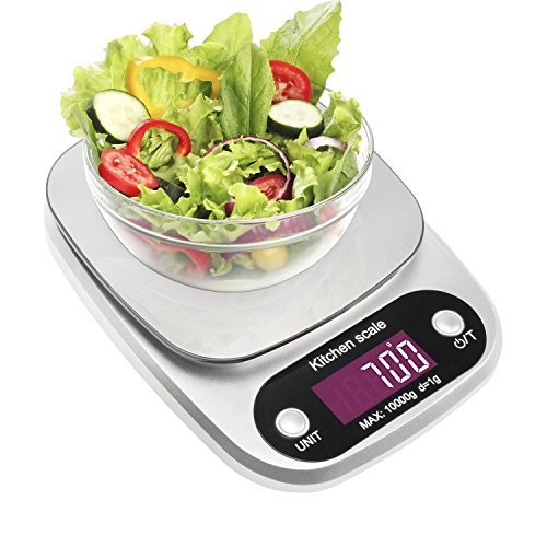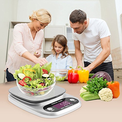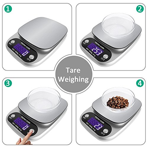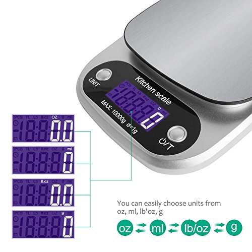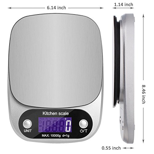 Studio : KK Publisher : KK Product Description Digital Kitchen Scale - Compact Stainless Steel Platform and High Precision Sensors.Start your new healthy eating habits with the KK kitchen scale. Food-Grade Safe Weigh Scale--Made with Stainless Steel Platform and ABS material which can put food on it directly. Measure Liquids and Foods--You can switch units to measure both milk,food,and other liquids.(lb:oz / g / fl:oz / ml). Zero/Tare Function-- The digital scale can allow you to zero out containers when using a bowl/plate as a container or working with multiple ingredients.And you won't have to recalibrate the scale after extensive use. Auto Shut-Off Function--Includes a 2 minute automatic turn-off that preserves battery life while giving you time to confirm each measurement. Lightweight and Low Battery Indicator--When low battery capacity will to remind replacement battery. Overload Indicator--When items exceed the maximum load-bearing range. Please remove item quickly to protect the scale. Specifications: Capacity:Weigh items up to 22 lbs Accuracy: ±1g Unit:g, ml, lb:oz, fl.oz Scale size: 8.34x6.1x1.18 inches Scale weight: 12.52oz Power supply: 3*AAA batteries (Batteries included) LCD size: 1.57*0.71inches LCD display: White font Material: ABS Stainless steel plate Work temperature: 0 ~ 40℃ Storage temperature: -20 ~ 60℃ Humidity: ≤90%RH Package contents: 1 x Digital scale 1 x User Manual 3 X aaa Batteries Note: For accurate weighing, please lay the scale on hard and flat surface. Low battery may result in inaccurate weighing,please replace the battery in time.
