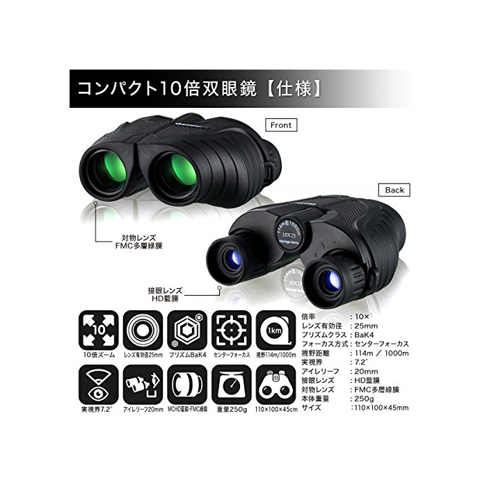 원본상품명:CORAX 眼鏡 10×25 小型折りたたみ式 FMC搭載 BaK4プリズムレンズで高質を現 ポロプリズム式 10倍25mm有