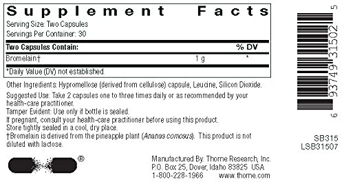 A mixture of proteolytic (protein-digesting) enzymes from pineapple.Since 1984, Thorne has set the standard for the exceptional formulation and quality manufacturing of nutritional supplements. Thorne delivers premium, science-based products, a health diagnostics technology platform, and the latest in medical education. With more than 350 products, Thorne is the most dispensed brand by 30-40 year old health-care practitioners. Thorne is dedicated to improving the health of our community as well as increasing the knowledge of nutritional health and wellness. Since 2012, Thorne has partnered with educational institutes and local charities to donate more than $1M in products and profits.