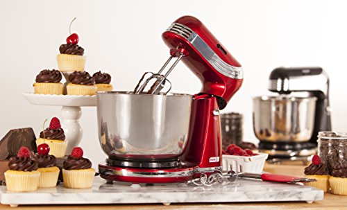 Feature : 2.5qt capacity Stainless Steel bowl allows you to whip up any treats / 6 preset speeds allow you to get the perfect mix every time / Small, compact and retro design makes this a standout on your kitchen countertop / All non-electric parts are dishwasher safe / 1-year manufacturer warranty, recipe book and access to our growing database of recipes included