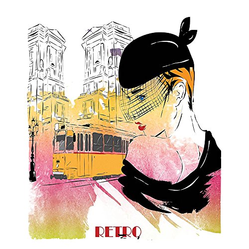 (kisscase)/Bedding Bath/Bedding/DIRECT FROM USA/Kisscase Custom Blanket Fashion House Lady Posing in front of Tramway Sketch Retro Romance Aest...