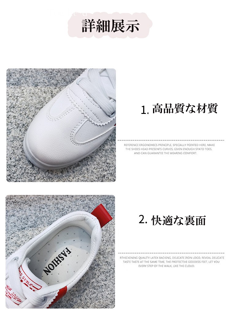 商品番号:XZ021 材質:PU+ゴム 色:ブラック、レッド ヒールの高さ:3.5cm約 アッパーの高さ:6cm約 サイズについてEU36=22.5cm EU36=23cm EU37=23.5cm EU38=24cm EU39=24.5cm EU40=25cm注意:※ サイズなど、商品詳細を必ずご確認後、ご了承頂いた上でご購入をお願いします。また、採寸方法違いにより、0.5~1cmの誤差がございますので、ご了承ください。商品内容:1xスニーカー特徴:【軽量、通気性よい】ゴムのソールとキャンパスの材質でスポーツシューズならではの軽さを実現し、通気性もよいです。どんな季節でも着用します。 軽量なので、ランニングや歩くや他の運動が易くになりました。【ファッションな配色】ファッションな配色で、シューズがファッションになり、女性に最適です。中学生などに通学靴としてもよい選択です。 【ゴムのソール耐滑】柔らかい材質で作って、ゴムのソールので、耐滑のです。スムーズな足運びをサポートします。球技や他の運動にもスムーズになりました。【利用場合】スポーツだけでなく、通勤や通学やアウトドア、普段履きとしても カジュアルなコーディネートをお楽しみい ただけます。