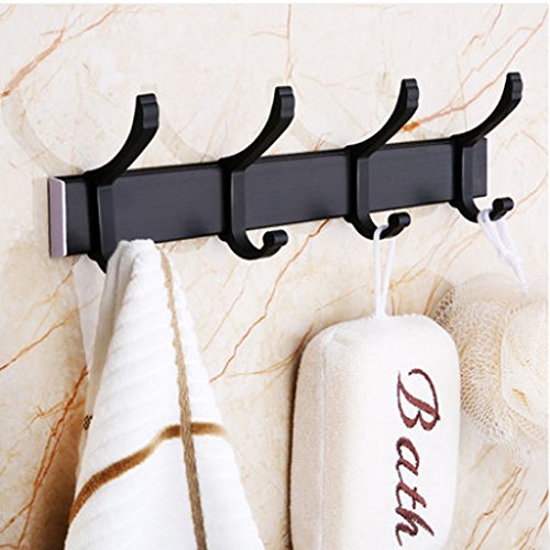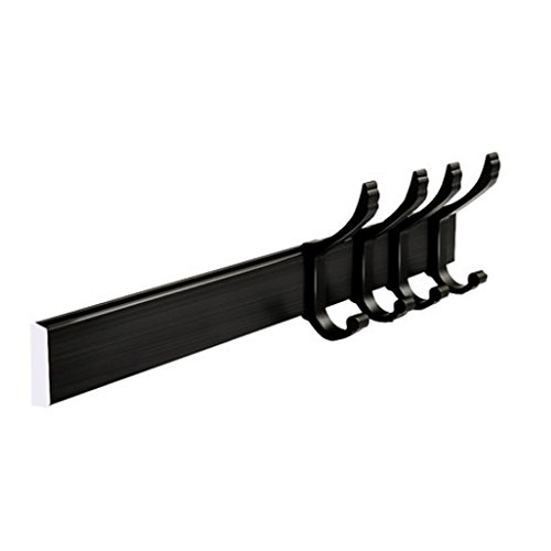 DIRUISHEN Removable Coat Hook Rack Wall Mounted Hook Rail Coat Hanger,Space Aluminum, 4 Hooks, 11 Inch for Hanging Clothes Cap Hat Belt Key Towel (4 Hooks, Black)