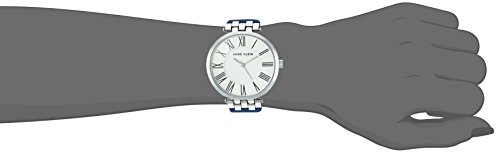 Watch Sizing Guide From the office to cocktails with the gals, this elegant Anne Klein™ timepiece will transition to any event with effortless ease. Silver-tone metal case. Blue leather band features an adjustable buckle closure. Round face. Three-hand analog display with quartz movement. White dial features black Roman numeral hour markers and hands, and Anne Klein detailing. Water resistant 100 ft. Imported. Measurements: Case Height: 34 mm Case Width: 34 mm Case Depth: 9 mm Band Width: 3⁄5 in Band Circumference/Length: 8 1⁄4 in Weight: 1.2 oz This product may have a manufacturer's warranty. Please visit the manufacturer's website or contact us at warranty@support.zappos.com for full manufacturer warranty details.Feature