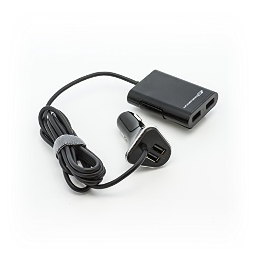 -. Feature : Charge smartphones, tablets and other portable devices simultaneously at optimum speed / Each USB port has a 2.4a output / Use the 6-ft extendable cable for easy accessibility in the backseat