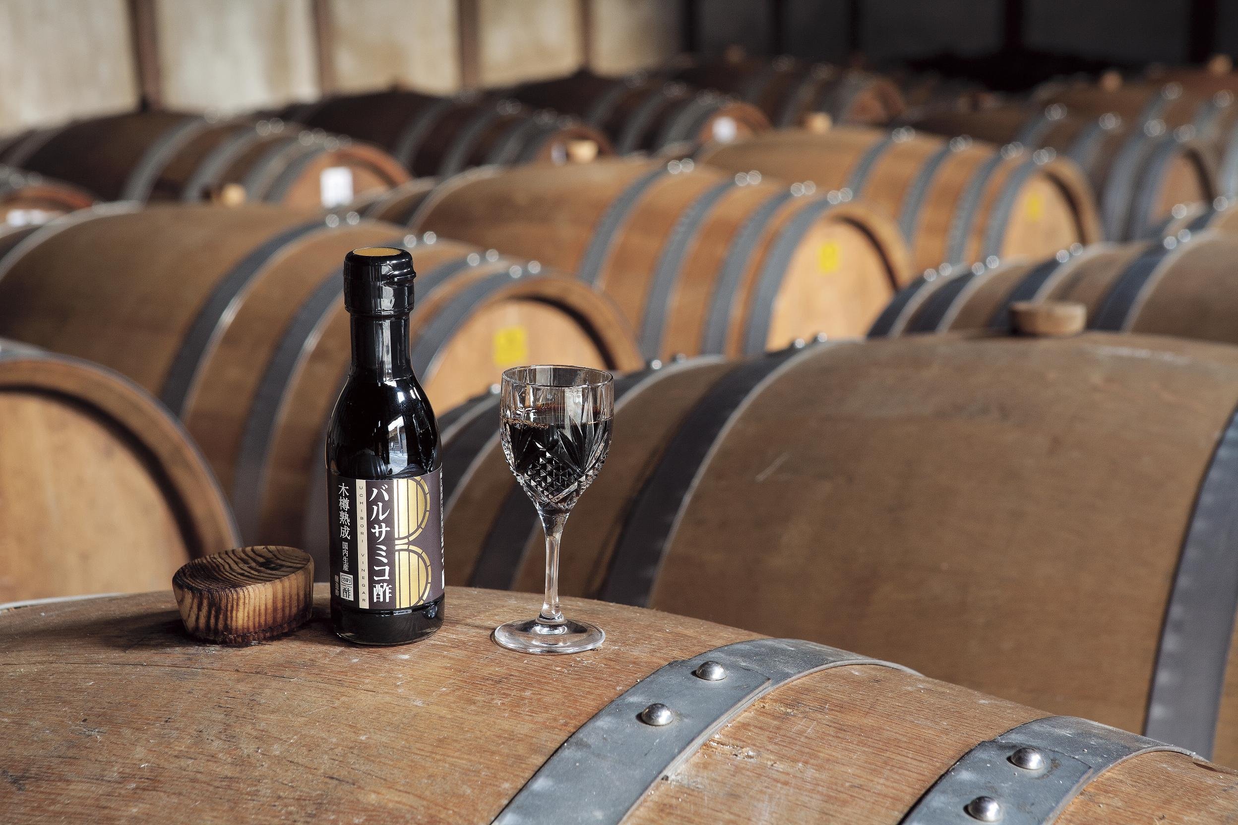 Balsamic vinegar brewed domestically using oak wooden bar from special cast Mottkot (boiled grape juice) from brewing Uchibori.