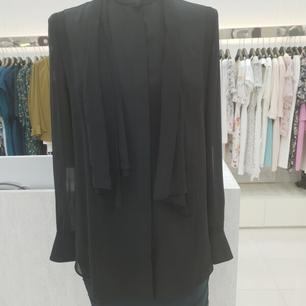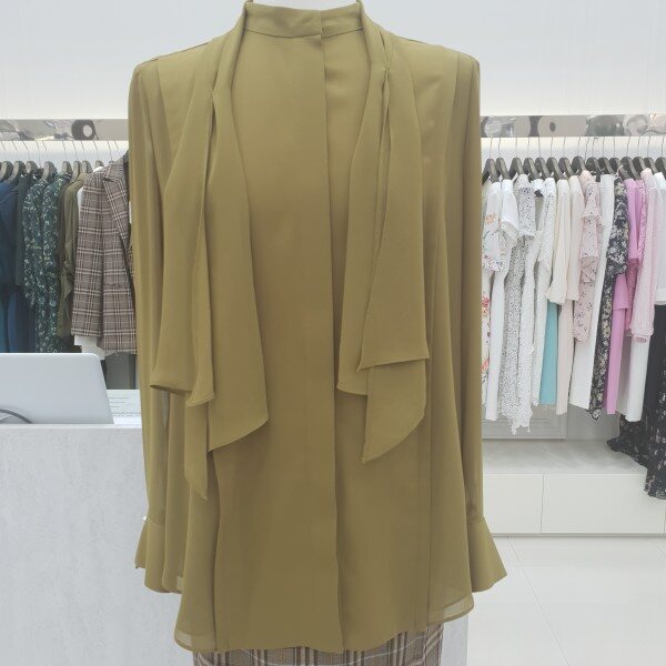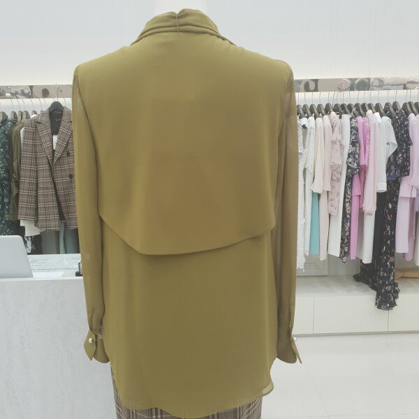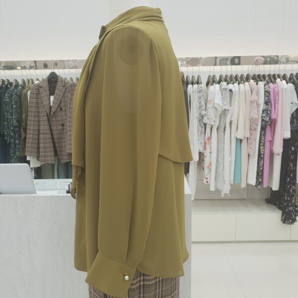 은은한 시스루가 여성스러움과 섹시함을 더한 스카프 포인트 블라우스입니다