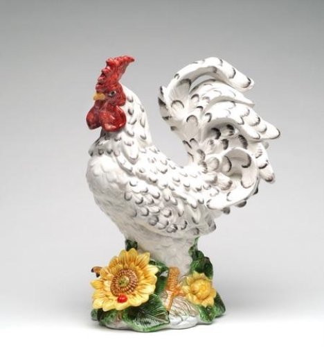 Cosmos 96418 Fine Porcelain Large Rooster with Sunflower Figurine, 15-1/4-Inch, White