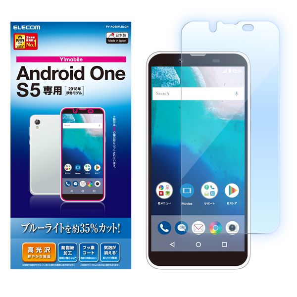 ●Android One S5の液晶画面をキズや汚れから守る、ブルーライトカットタイプの高光沢フィルムです。
