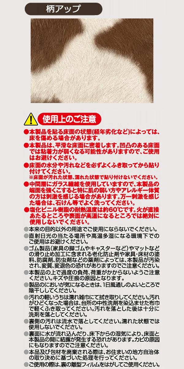 | のりを使っていないのでキレイにはがせますが、ズレ防止機能が付いているのでズレません。表面の強度が優れているのでキズや沈みに強く、キャスターもスイスイ動きます。貼りやすい大きさにはさみで簡単にカットする事ができます。重ね貼りすることもできますので、約1cm重ねて貼ってください。 |