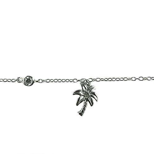 -. Title : Sterling Silver Palm Tree with CZ Anklet