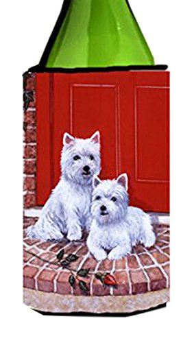 Caroline's Treasures Red Door Westies Wine Bottle Koozie Hugger, 750ml, Multicolor