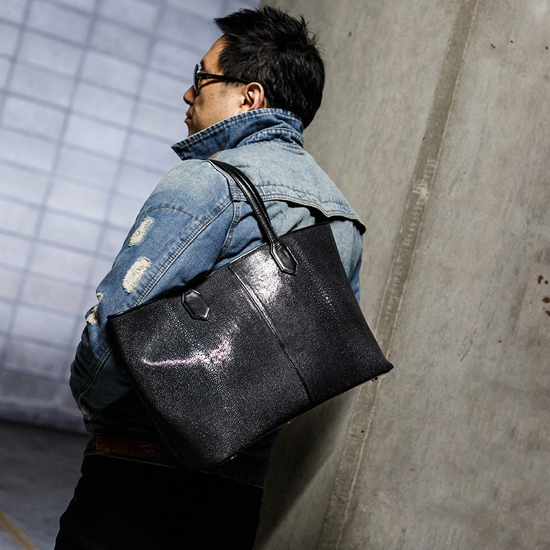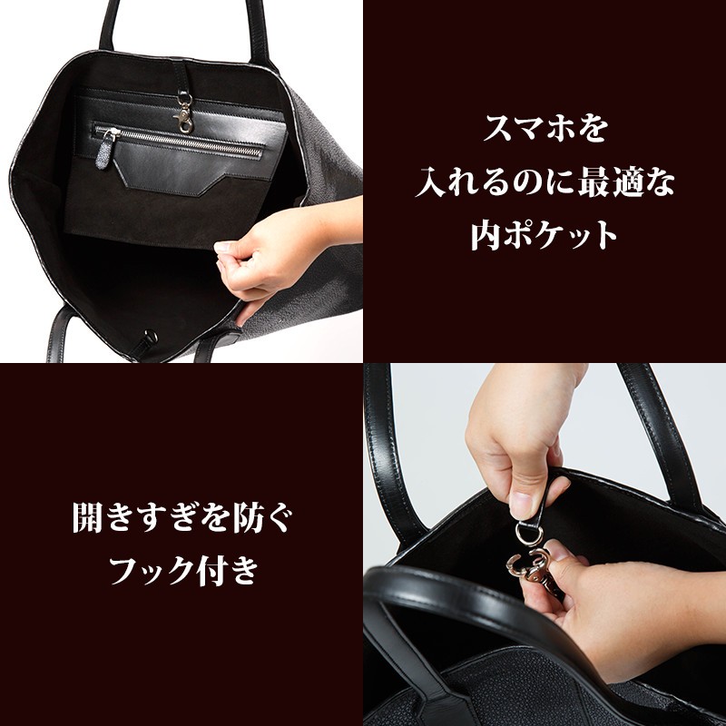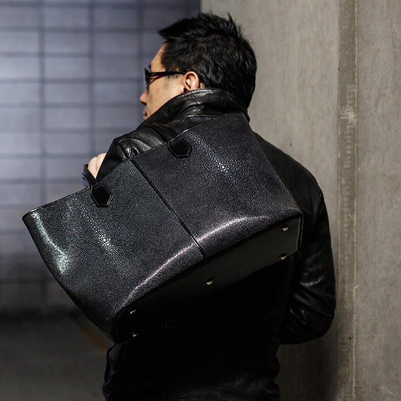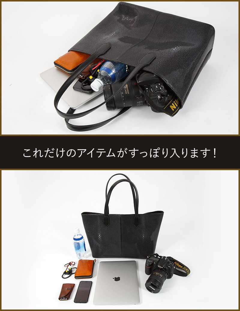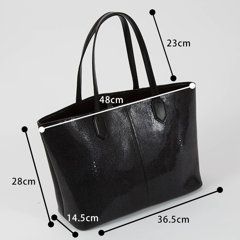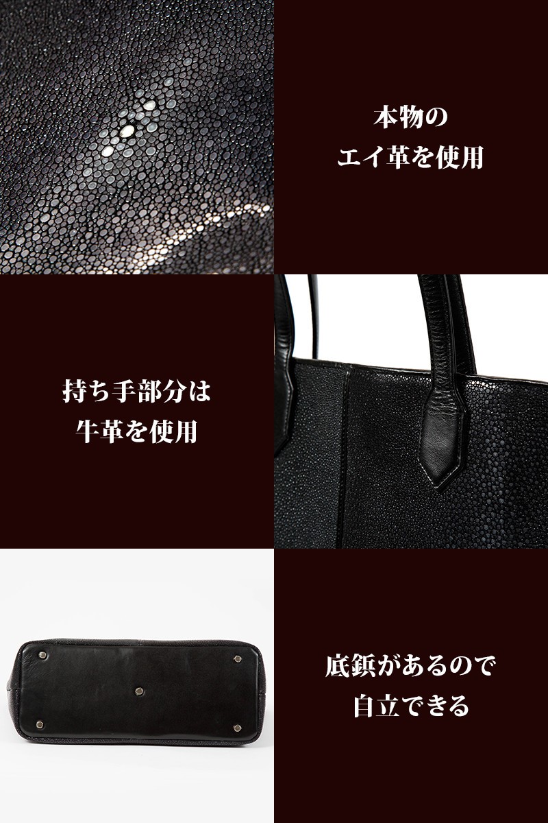 サイズ 高さ:48cm × 幅:28cm × マチ:14.5cm素材 表側:スティングレイ(エイ革)/牛革特徴 本物のエイ革を贅沢に使用して作っております。
