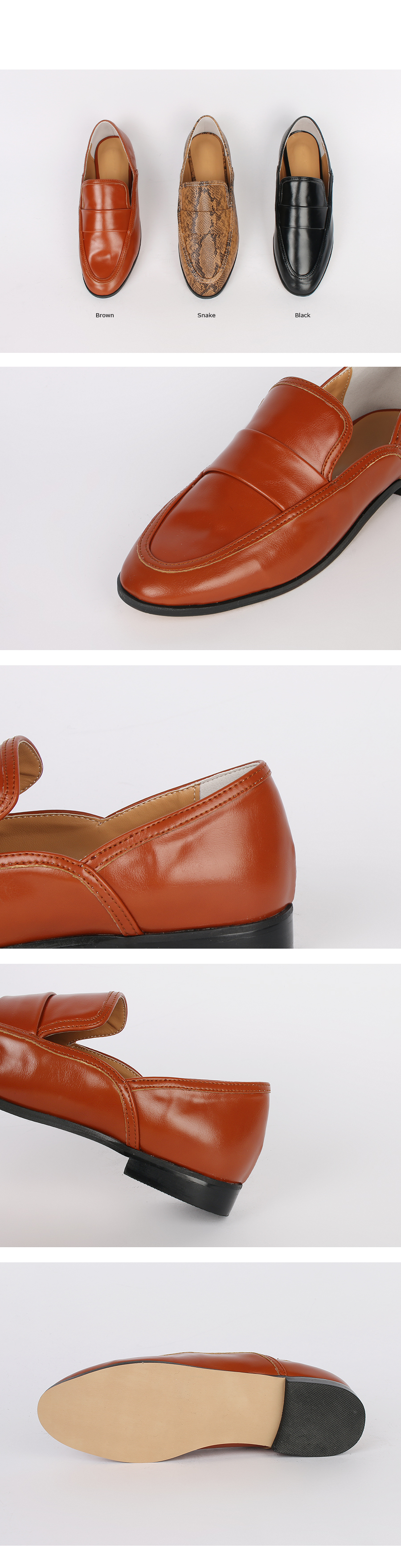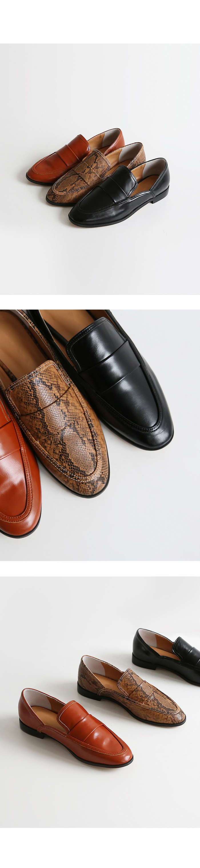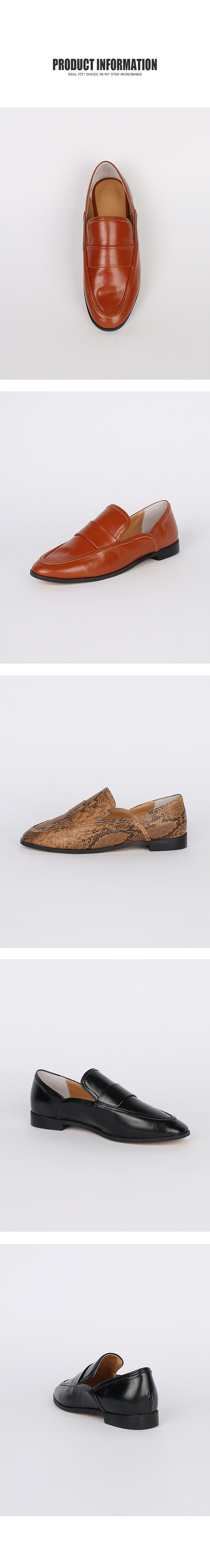 DETAILS - 소재 : 인조소가죽 - 컬러 : brown,snake,black - 피팅감 : 정사이즈 / 무게 : 보통인편 - 착화감 : 편해서 데일리 슈즈로 좋아요 - 모델피팅 : 230