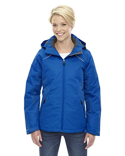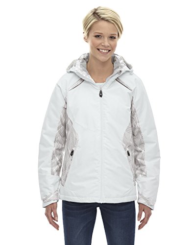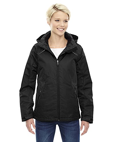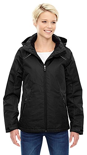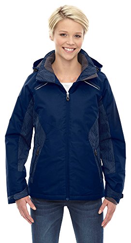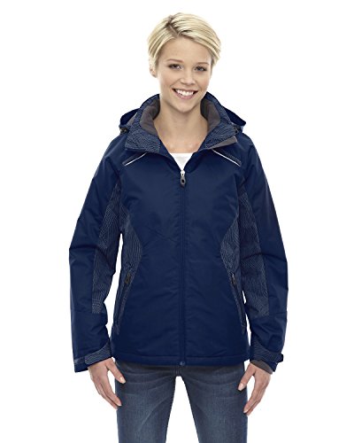 Binding : Apparel Product Description INSULATION: 140 gsm in body; 80 gsm in sleeves, hood and collar; Water resistant finish; 100% polyester full dull dobby, 4.6 oz./yd2/155 gsm; LINING: 100% polyester taffeta with embossed print; inside storm placket with brushed tricot chin guard; thermal brushed tricot-lined collar and pockets; centre front reverse coil zipper; zip-off adjustable thermal hood with back shockcord ; adjustable shaped cuffs with tabs and stretch storm cuffs; lower pockets with reverse coil zippers; inside security pocket; thermal retention shockcord at hood and drop back hem; flat reflective piping at front and back; details at side panels, sleeve panels, shoulder yoke and hood?; audio port access through inside chest pocket; back yoke with asymmetric design; 0