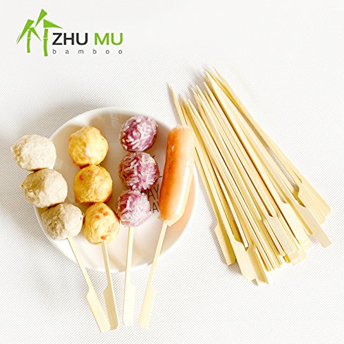ZHUMU 4.3 Inch Bamboo Picks Paddle Skewers BBQ Picks (Pack of 100)