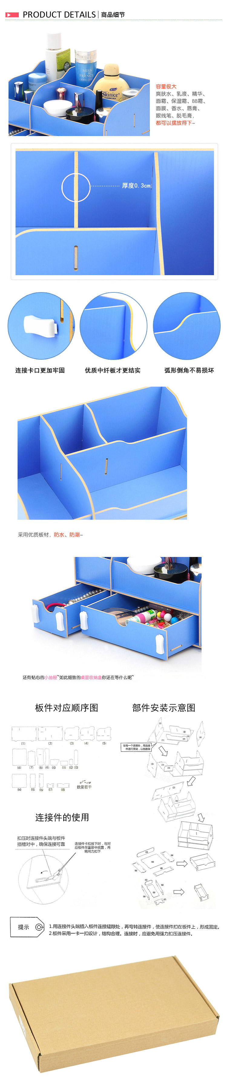 全新二代升级款木质收纳盒,双饰面浮雕面,质感强,防水、耐磨、经久耐用,拆装简便,适合桌面收纳,化妆品收纳,是居家收纳绝佳之选。