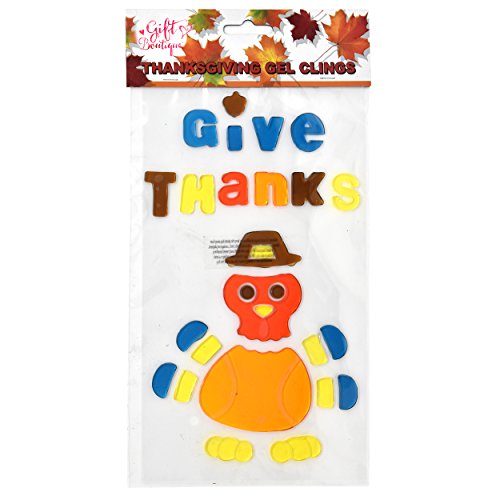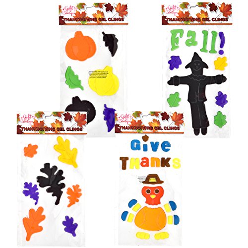 Thanksgiving Window Gel Cling Decorations, Pack of 4 Fall Autumn Harvest Party Decor By Gift Boutique