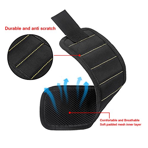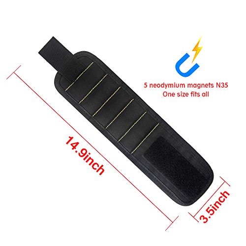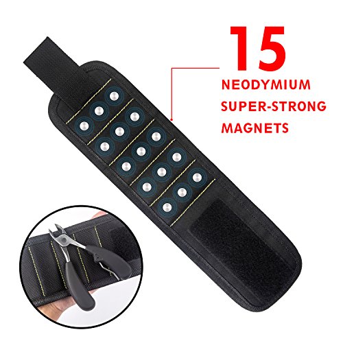 - BETTER DESIGN. This Magnetic Wristband equipped with 15 powerful magnets, which make the Wristband much more powerful than the similar products on the market. It is able to hold more necessary items on it and guarantee for higher efficiency.
