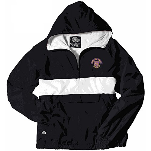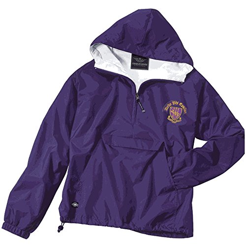 Binding : Apparel Product Description Before you head out on any trip, whether it's on a camping trip or a trip to campus, pack up this purple Delta Phi Epsilon Anorak to take along with you. It's especially designed to fold right up into its own pocket. This is a classic windbreaker except it has soft protective flannel lining inside to keep you warm. The hood covers your whole head, with a little extra help from the extended zipper that you can pull up past your chin. There's also an adjustable band at the bottom so that you can pull it tightly at the bottom - cold weather is no match for this quality sorority windbreaker! Unisex size, geared more for men. 0